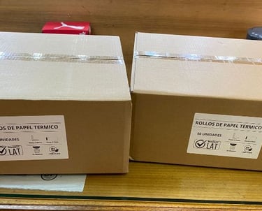 Papel térmico para boletas y comprobantes.